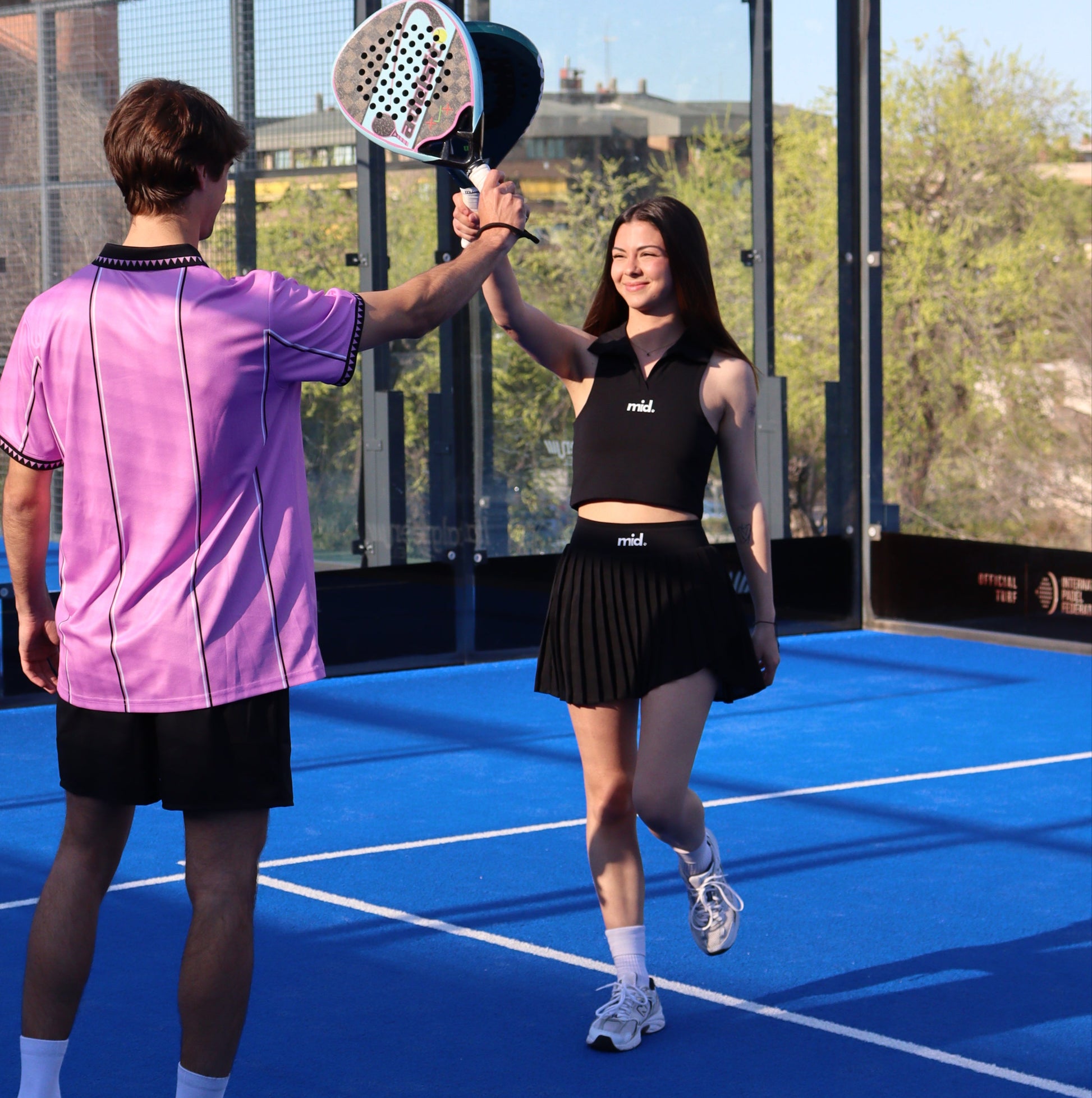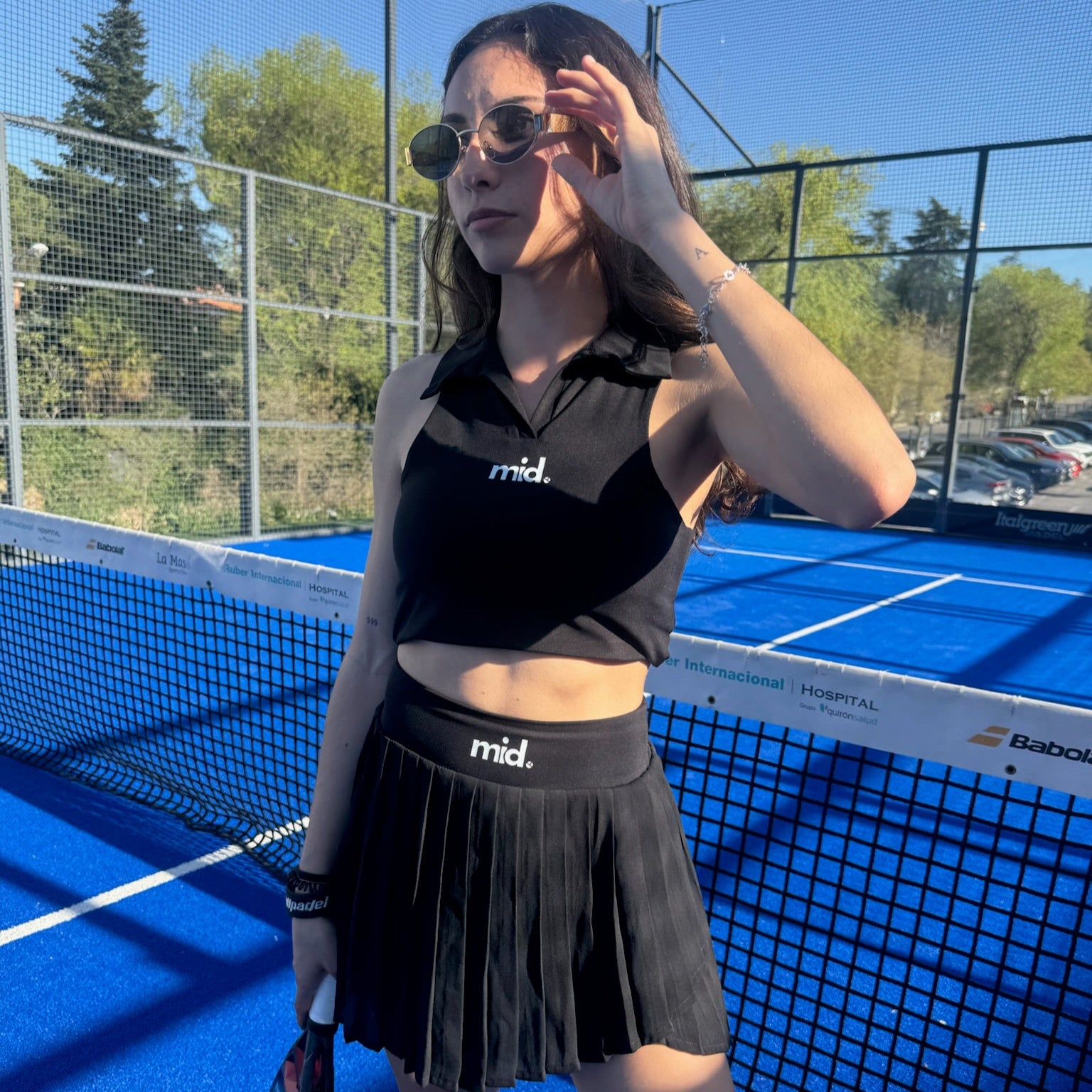 Falda 100% Lycra. Gramaje de 300gsm. Color negro con estampado en serigrafía de color blanco en la parte superior de la falda. La falda incluye pantalones.