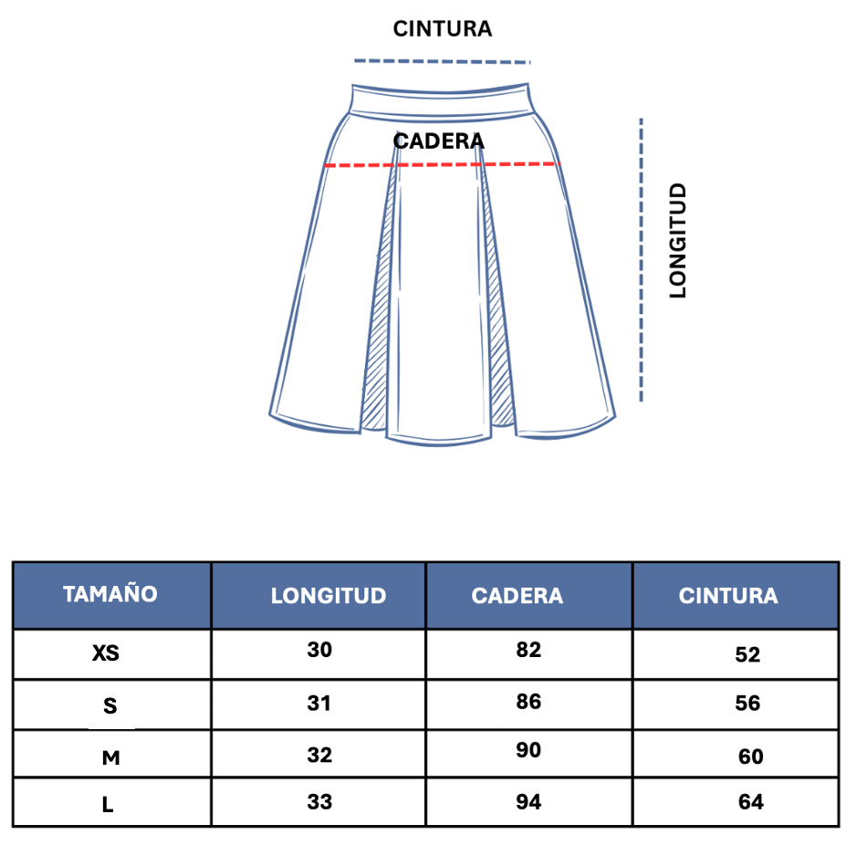 Falda 100% Lycra. Gramaje de 300gsm. Color azul marino con estampado en serigrafía de color blanco en la parte delantera de la falda. La falda incluye pantalones.