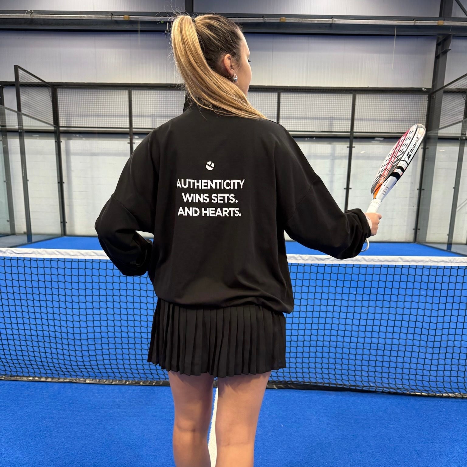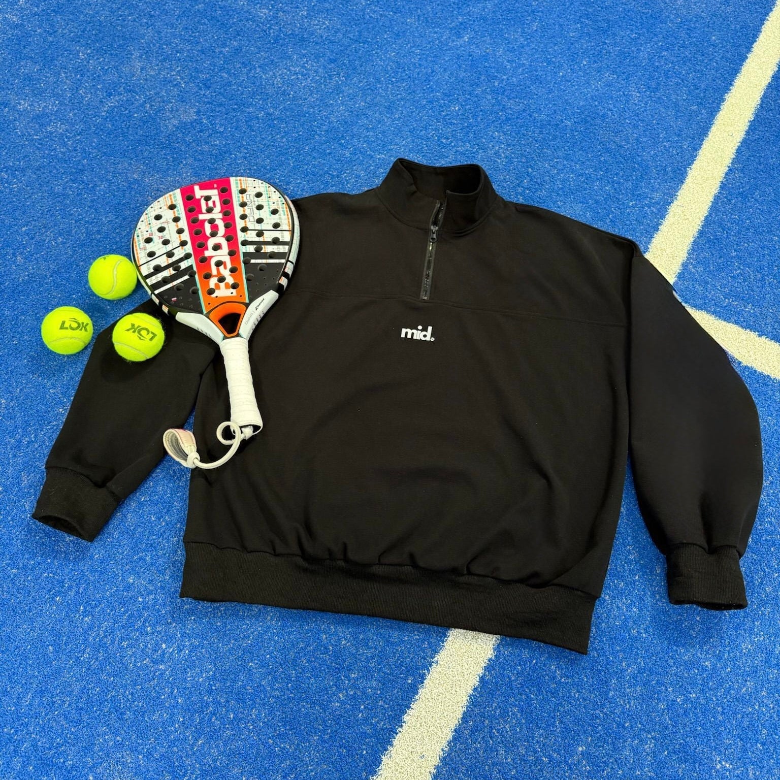 Sudadera Oversize con un 45% algodón, 40% de poliéster y un 15% de elasticidad. Gramaje de 250 gsm. Color negro con estampado del logo Mid en serigrafía de color blanco en la parte superior delantera y en la parte trasera la frase que nos destaca en serigrafía en color blanco.